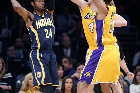 Paul George (stânga) a fost excelent blocat de defensiva lui Charlotte Bobcats în meciul de aseară