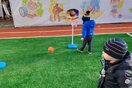 În ciuda frigului de afară înregistrat, micuții s-au bucurat de sportul cu mingea la coșchiar dacă au doar câiva anișori. Au încercat să introducă mingea în coșurile amenajate,