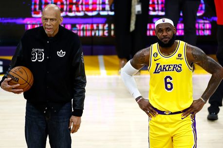Jucătorul lui Lakers a primit felicitările și aprecierile lui Jabbar care era și el prezent în sală. Fostul mare baschetbalist s-a retras în anul 1989.