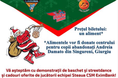 Steaua CSM EximBank și cluburile de baschet BC Laguna Sharks și ACS Dan Dacian anunță a treia ediție a evenimentului "De Crăciun, jucăm baschet", proiect care are scopul de a populariza baschetul în rândul copiilor, dar și de a le oferi o mână de ajutor micuților defavorizați.