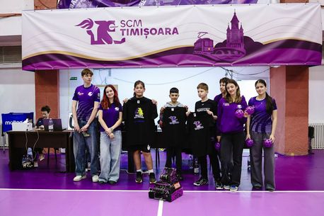 Roboțetul a fost special conceput pentru baschet, pentru că așa e tema de concurs în acest an la competițiile de robotică First Challenge. „A fost bine, l-am pregătit mult pentru competiție și astfel, am reușit să-l facem să meargă și astăzi și să nimerească mingile la coș. Noi participăm la o competiție internațională. În fiecare an este un alt concurs și trebuie să treci de niște probe. Anul acesta, a fost să aruncăm niște mingi la coș și am văzut oportunitatea de a colabora cu SCM pentru a face ceva frumos”, a explicat Vlad Marian, membru al echipei Cybermoon. „Practic, e pentru baschet, cam asta facem și noi”, a completat colega sa, Natașa Rață.