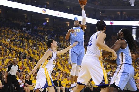 În celălalt meci al serii, Denver Nuggets a forțat meciul șase cu Golden State Warriors, după ce a câștigat pe teren propriu, scor 107-100, cu echipa californiană. George Karl a schimbat tactica pentru meciul de aseară și le-a impus jucătorilor să se bată pentru orice minge și să joace mult mai fizic în plan defensiv. Iar acest lucru le-a ieșit de minune celor de la Nuggets, care au primit 100 de puncte, a doua cea mai bună performanță din acest play-off. Evident, adversarii lui Denver au criticat jocul dur al gazdelor, antrenorul Mark Jackson spunând chiar că jucătorii Nuggets au încercat să-l accidenteze pe Stephen Curry. Acuzații parate de Kenneth Faried, care a fost eliminat pentru șase greșeli personale, sau JaVale McGee. „Ei nu spun câte coate am primit și eu. E un joc fizic, normal că uneori poate deveni mai dur”, a comentat Faried. Cei mai buni marcatori ai lui Denver au fost Andre Iguodala (foto sus, la minge, 25 de puncte, 12 recuperări, 7 pase decisive) și Ty Lawson (19 puncte, 10 pase decisive). În schimb, la Warriors, Stephen Curry nu a mai făcut un meci la fel de bun, ratând șase aruncări de la trei puncte. Curry a terminat jocul cu doar 15 puncte, lider la acest capitol pentru Warriors fiind Harrison Barnes (23 de puncte, 9 recuperări). Meciul șase are loc la Oakland vineri dimineață. O victorie a lui Denver ar forța meciul șapte, care s-ar disputa în „Pepsi Arena”.