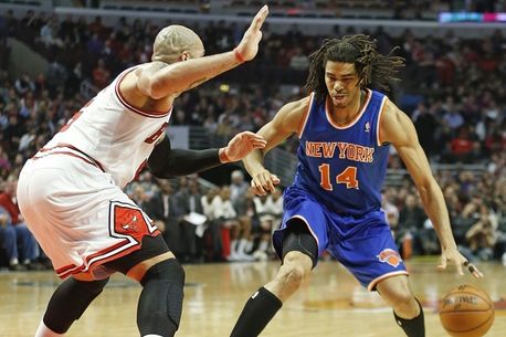 Dacă Lakers se chinuie să prindă play-off-ul, New York Knicks a demonstrat încă o dată că este una dintre cele mai în formă echipe din NBA, învingând-o fără nicio emoție aseară pe Indiana Pacers, scor 90-80. A fost victoria care a asigurat locul 2 în sezonul regulat în Est pentru Knicks (53-27), new-yorkezii distanțându-se la patru victorii de Pacers (49-31), cu două meciuri rămase de disputat în sezon. Deși Carmelo Anthony s-a lovit la umăr și nu a mai evoluat în ultimul sfert, superstarul lui Knicks a terminat meciul cu 25 de puncte și 5 recuperări, greul fiind preluat în ultimele 12 minute de rezervele Chris Copeland (foto sus, dreapta, 20 de puncte) și J.R. Smith (15 puncte, 8 recuperări). Totuși, new-yorkezii continuă să aibă probleme, Tyson Chandler, Kenyon Martin și Amar”e Stoudemire fiind accidentați, doar Martin putând să revină până la începutul seriei de play-off cu, cel mai probabil, Boston Celtics. În schimb, tehnicianul Frank Vogel nu găsește cheia înfrângerilor pentru Pacers, care au pierdut al patrulea meci din ultimele cinci. Aseară, starul Paul George (9 puncte, 7 recuperări, 11 pase decisive) nu a fost într-o seară bună, la fel ca și pivotul Roy Hibbert (4 puncte, 10 recuperări). Cel mai probabil, în primul tur de play-off, Indiana va da peste Chicago Bulls.