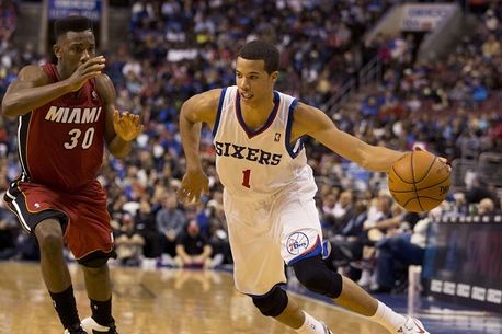 Carter-Williams (dreapta) a fost cel mai bun jucător aseară în meciul cu Miami Heat