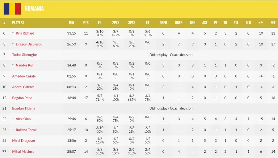 România învinsese luna aceasta Albania și în deplasare, cu 87-83, în precalificările pentru Campionatul European din 2025.