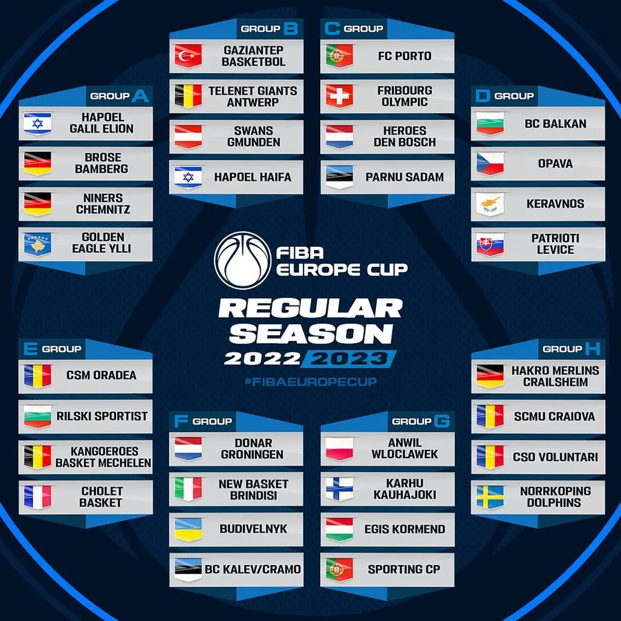 Alături de cele două echipe din Liga Naţională, din grupa H mai fac parte formaţiile: Norrkoping Dolphins din Suedia şi HAKRO Merlins Crailsheim din Germania.
