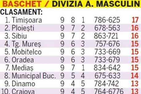 Divizia A. MASCULIN, etapa a 9-a: CSU Ploiești – BC Csikszereda 70-58, Municipal Oradea – CM Pitești 78-81, Atlassib Sibiu – Universitatea Craiova 87-76, Municipal București – Politehnica Unirea 91-49, CS Otopeni – CSS Giurgiu 57-48, BC Timișoara – Gaz Metan Mediaș 78-76, U Mobitelco – Energia Rovinari 89-92, CS Dinamo – Mureș 76-64.