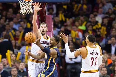 Love (stânga) a fost excelent atât defensiv, cât și ofensiv pentru Cavaliers în meciul cu Pacers