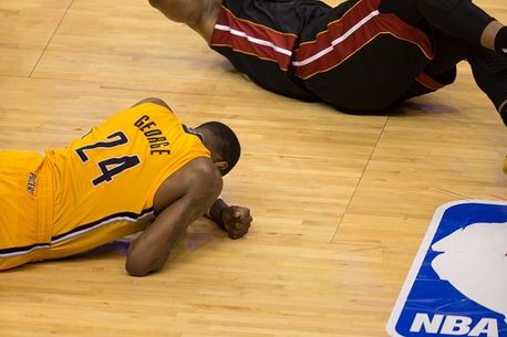 Wade și Paul George s-au ciocnit dur în sfertul trei, cei doi acuzând dureri la genunchi. Din cauza unor dureri cronice la genunchi, Wade a lipsit 28 de meciuri în sezonul regulat, când a fost odihnit de antrenorul Erik Spoelstra