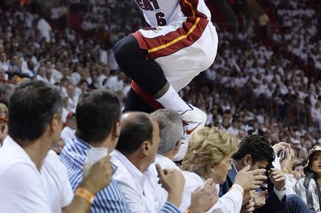 Pentru a opri un atac al lui Nets, LeBron nu s-a sfiit să ajungă în tribună