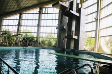 Bazinul este dotat cu platforme pentru sărituri, în această