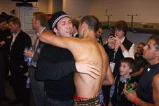stânga), fostul său adversar. Mexicanul l-a îmbrățișat pe campionul