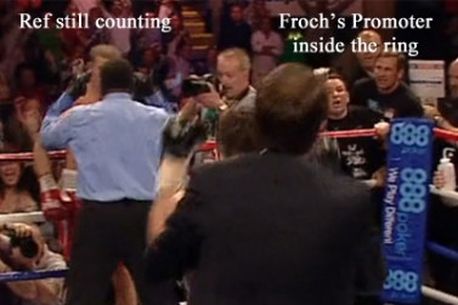 Gilfoid se leagă de faptul că membrii staff-ului lui Froch au intrat pe ring înainte de finalul partidei, lucru interzis în box.