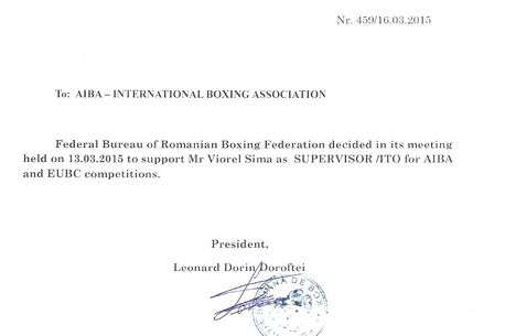 Săptămâna trecută, Biroul federal a decis să-i acorde în continuare girul lui Viorel Sima, cu o decizie de 9-3. Deși el însuși s-a aflat între cei trei care au votat împotrivă, Leonard Doroftei a luat act de hotărârea Biroului federal, iar luni a trimis la AIBA documentul prin care FRB îl susține pe Sima.