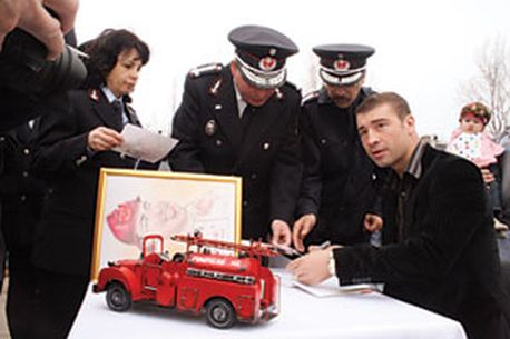 Pompierii gălățeni l-au desemnat pe campionul mondial Lucian Bute cel mai „tare“ prieten al lor, oferindu-i și distincția de „Pompier nr. 1“. Pentru a-și păstra renumele de „Mister KO“, pugilistul trebuie să acționeze ca pompierii: să lupte repede și bine, „să-i stingă în bătaie pe adversari“. (D. Lungu)