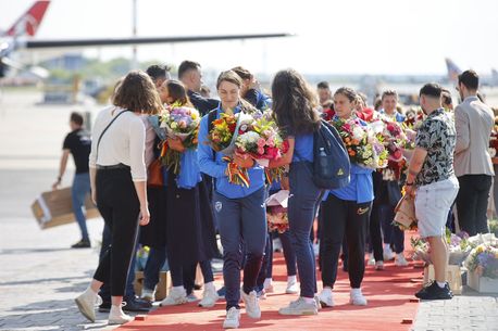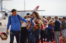 Sportivii au fost întâmpinați cu flori la aeroport Din delegația României la Szeged au făcut parte sportivi, antrenori, echipa medicală și staff-urile tehnice.