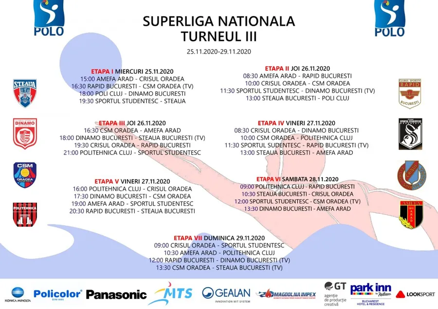 Bazinul de înot „Tolea Grințescu” (Floreasca) găzduiește cel de-al treilea turneu al Superligii Naționale de polo după mult timp de așteptare.