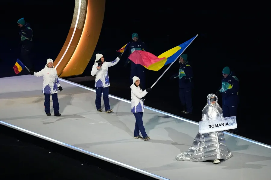 Cei 29 de sportivi români și-au făcut apariția la ceremonia de deschidere care are loc în 4 locații: Milano (Stadionul Olimpic Milano San Siro), Cortina (centrul oraşului Cortina d’Ampezzo), Predazzo (Stadionul de sărituri cu schiurile Predazzo) şi Livigno (Parcul de zăpadă Livigno).