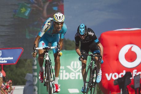Cu două victorii de etapă în Vuelta și una în Giro, Fabio Aru (Astana – stânga) se anunță a fi un mare talent