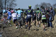 Prima separare serioasă s-a făcut pe sectorul al 14-lea, Tilloy a Sars-et-Rosieres. Fără să fie vreun punct teribil al cursei, condițiile au fost groaznice (foto sus), iar amintirea lui Johan Museeuw, triplu câștigător în Paris-Roubaix, care era să-și piardă un picior din cauza unei căzături, care i-a provocat cangrenă, a fost din ce în ce mai pregnantă. O accelerare a echipei Etixx-Quick Step a reușit să rupă serios plutonul, iar Kristoff (Katiușa) și Wiggins (Sky) au rămas în spate, regrupându-se doar aproape de Mons-en-Pevele. Un prim indicator pentru ceea ce avea să urmeze?
