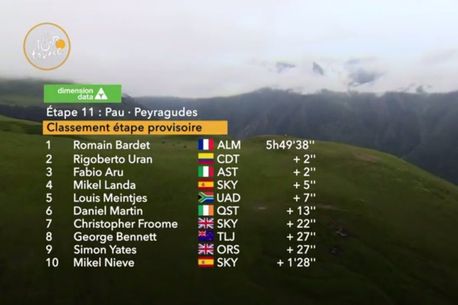 Bardet a trecut primul linia de sosire, n-a mai avut nevoie de nicio tactică pentru a-și trece în cont un succes în actuala ediție a Turului Franței. Rigoberto Uran și Fabio Aru au venit la 2 secunde, în timp ce Froome a sosit abia al 7-lea, la 22 de secunde. Liderul Team Sky a fost detronat din poziția de lider în Turul Franței pentru 6 secunde. Fabio Aru este noul purtător al tricoului galben.
