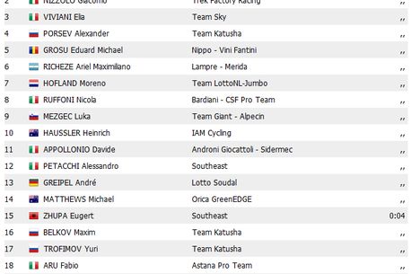 *** Ilnur Zakarin, Stefano Pirazzi, Benat Intxausti, Vasil Kiryienka, Dario Cataldo, Jurgen Van den Broeck, Andrey Amador