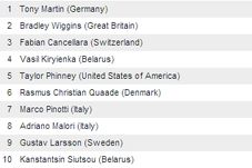 *Tony Martin a avut o medie orară de 52,9 km/h, câștigând al treilea titlu consecutiv de campion mondial la contratimp