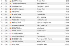 Pe lângă locul secunde de la general, Purito Rodriguez a câștigat la mustață lupta cu Valverde pentru tricoul verde, pe puncte. Cel mai bun cățărător a rămas Omar Fraile (Caja Rural), care își adjudecase tricoul de acum câteva zile, în timp cea mai bună echipă este Movistar. Spaniolii au un avans de aproape 30 de minute față de locul secund, Sky.