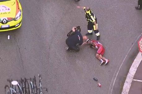 Căzătura lui Caruso a fost cea mai gravă. Rutierul de la Katiușa a fost scos de pe șosea pe targă, cu un guler cervical care să îi protejeze gâtul