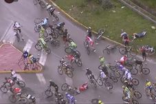Evident, acest lucru a fost sinonim cu o dezordine creată în pluton, în care fiecare dintre favoriți a încercat să fie cât mai în față. Iar când asfaltul e umed, orice frână pusă transformă pneurile bicicletei în adevărate patine. De aici până la o căzătură serioasă, nu a mai fost decât un pas. Carnagiul a venit cu 11 kilometri de final, în apropierea unui sens giratoriu. Când rutierii aflați în a doua treime a plutonului au văzut obstacolul din față, a fost deja prea târziu! Căzăturile s-au succedat cu o viteză teribilă, iar accidentații au rămas întinși pe șosea. Printre ei, Purito Rodriguez, Angel Vicioso și Giampaolo Caruso (Katiușa), Janez Brajkovic (Astana) sau Ben Swift (Sky).