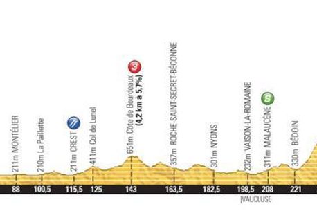 Mont Ventoux a fost întotdeauna o atracție pentru suporterii Turului Franței. Particularitatea ascensiunii de 20,8 km, cu o rampă medie de 7,5% este peisajul selenar oferit de bolovanii albi și de lipsa vegetației. Totul datorită mistralului, vântului care a suflat în trecut și cu 320 km/h pe crestele Muntelui „Chel”! „Gigantul din Provence” i-a fascinat încă de acum un secol pe cicliști, în ciuda dificultății sale. Primul rutier care l-a cucerit a fost Jacques Gabriel în 1907, care a terminat ascensiunea în aproape două ore și jumătate. Progresele au făcut ca acum Muntele „Chel” să fie urcat în doar o oră de către specialiștii cățărărilor. Însă pe lângă peisaj și istorie, muntele din Provence are și o istorie tragică. În 1967, britanicul Tom Simpson a murit pe pantele sale, după ce a căzut de pe bicicletă din cauza căldurii. Nici cocktailul de amfetamine cu alcool luat în seara precedentă de britanic nu a ajutat. Însă de atunci, pe Ventoux nu s-a mai înregistrat niciun deces într-o cursă profesionistă, muntele fiind cucerit atât de cățărători redutabili, precum Eddy Merckx, Marco Pantani sau Richard Virenque, cât și de rutieri mai puțini cunoscuți precum Eros Poli sau Richard Virenque. Ales de organizatori să onoreze ziua națională a Franței, Muntele „Chel” își va lua, cu siguranță, tributul și în acest an.