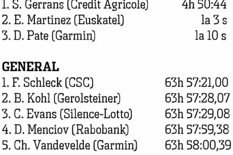 Nimic nu este însă jucat, primii șase la „general” aflându-se la diferențe ce nu depășesc 60 de secunde! Atacat din toate părțile, Cadel Evans (Silence-Lotto) s-a văzut depășit de Schleck și de Bernhard Kohl pe finalul unei etape câștigate clar, la sprint, de Simon Gerrans (Credit Agricole).