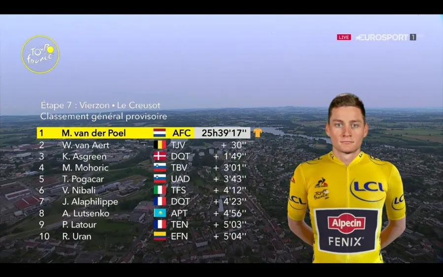 Mathieu van der Poel (Alpecin-Fenix) a făcut parte din evadarea zilei care a ajuns cu bine la final. El și-a mărit avansul în clasamentul general față de Tadej Pogacar (UAE) și alți rutieri care aspiră la tricoul galben.