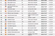 * În ierarhia generală, Froome a recuperat minutul pierdut în etapa de vineri, distanțându-se la 4 minute și 14 secunde de Mollema și la 4 minute și 25 de secunde de Contador