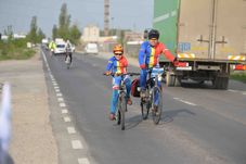 Cu bentiță tricoloră sub cască, Radu nu este o excepție: însemne tricolore apar de la banderole pe braț, până la paglici fixate pe câști și tricouri. Și dacă cel mai tânăr particpant este „tricolor”, pentru o simetrie aparte, și Marin Cenușă, un veteran de 76 al curselor ProSport, privit cu admirație de colegii de pluton, a venit la Marea Pedalare îmbrăcat în aceleași culori.