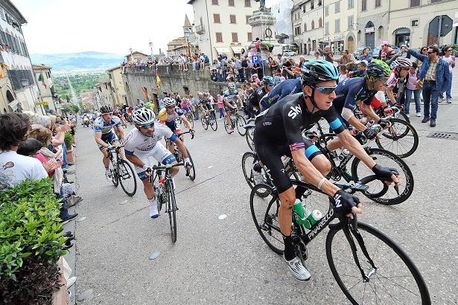 Evident, bătălia în plutonul tricoului roz urma să dea învingătorul de etapă. Iar Sky a fost echipa care a riscat prima. Cu un Wiggins apatic, care a stat mai mult în spatele plutonului, șefii echipei britanice i-au ordonat columbianului Rigoberto Uran să atace. Iar medaliatul cu bronz de la Jocurile Olimpice de la Londra a plecat din pluton, profitând de trena falsă dusă de colegul lui Nibali, Valerio Agnoli. Imediat, distanța s-a mărit la 15, 20, ba chiar la 45 de secunde! Simțind pericolul, Nibali a accelerat la rândul său. Și ca la un joc de domino, rutierii au început să cadă din „gruppo maglia rosa”. Mai întâi Gesink (Blanco), apoi Intxausti (Movistar) și, cel mai important, Wiggins. Englezul n-a putut să se țină de Nibali, Betancur, Pozzovivo sau Evans. Și a pierdut 37 de secunde pe șosea, plus alte 12 secunde de bonificație în fața lui Nibali. Asta în timp ce Uran câștiga etapa și devenea, cel puțin teoretic, liderul lui Sky. Columbianul a urcat pe trei în clasamentul general, la două minute și patru secunde de Nibali, cu patru secunde mai bine decât Wiggins. Între Nibali și Uran s-a infiltrat, surprinzător, Cadel Evans, australianul fiind situat la 41 de secunde de liderul clasamentului general.