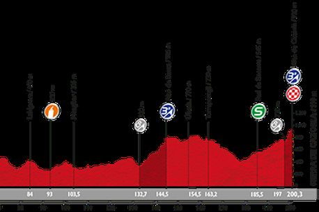 Joi este o etapă similară cu cea de ieri, care s-a terminat tot într-o cățărare de categoria a 3-a. Diferența constă în faptul că finalul nu mai este atât de abrupt, cățărarea în sine fiind una extrem de lungă (spre 20 de kilometri), cu o pantă medie foarte domoală. Doar în ultimul kilometru panta crește (se ajunge la 13% pentru câteva zeci de metri), dar puncheurii nu vor mai fi la fel de favorizați. Omul de bătut e Alejandro Valverde, dar e de așteptat ca și „Purito” Rodriguez, care a dezamăgit marți, într-o rundă care i se potrivea mănușă, să își dorească victoria.
