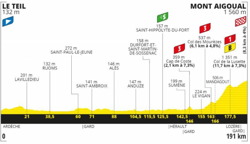 Etapa a 6-a programată între Le Teil și Mont Aigoual, pe distanța de 191 de kilometri, aduce din nou în prim-plan oamenii de clasament general, având în vedere profilul etapei pe ultimii 40 de kilometri.