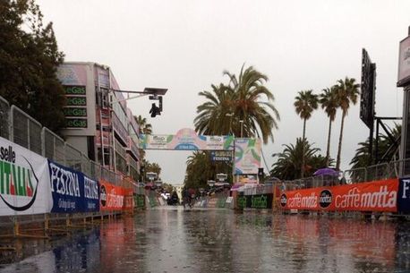 Deși prognoza meteo anunța episoade ploioase de-a lungul celor 294 de kilometri, nimeni nu aștepta o ploaie atât de puternică la mijlocul parcursului. Amestecați cu grindină, stropii i-au încetinit pe rutieri și au transformat fiecare pedală dată într-un adevărat chin, chiar lângă coasta ligurică. Iar temperaturile de sub 10 grade au adăugat încă o dimensiune suferinței rutierilor, lucru demonstrat și de Luca Paolini (Katiușa), unul dintre favoriți, care și-a încălzit mâinile înghețate stropindu-le cu ceai cald din bidonul oferit din mașina echipei ruse. Dar Matteo Bono (Lampre Merida), Nathan Haas (Garmin-Sharp), Nicola Boem (Bardiani), Antonio Parrinello (Androni Giocattoli), Maarten Tjallingii (Belkin), Jan Barta (Netapp-Endura) și Marc de Maar (UnitedHealthCare), cei șapte evadați ai zilei, au știut că nu au nicio șansă, deși au avut 10 minute avantaj în fața plutonului la mijlocul cursei și 5 minute și jumătate cu 50 de kilometri înainte de final.