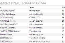 Până când plutonul urmăritor s-a organizat, neexistând un rutier cu experiență care să conducă urmărirea fugarilor, distanța s-a mărit la aproape 50 de secunde, iar cei doi păreau că au cursă câștigată! N-a fost așa! Deși mai aveau 26 de secunde la intrarea în ultimul kilometru, adică exact lângă Colosseumul din Roma, Valverde și Pozzovivo n-au conlucrat pentru a-și asigura o bătălie în doi pentru victorie. În spate, Gilbert și Colbrelli au tras puternic pe ultimele sute de metri, iar indecizia lui Pozzovivo, care știa că va pierde la sprint în fața lui Valverde a fost decisivă. Spaniolul a accelerat cu 300 de metri înainte de final, suficient cât să câștige cu o secundă în fața coechipierului lui Pozzovivo, Davide Appollonio. Podiumul a fost completat de Sonny Colbrelli (Bardiani-CSF), în timp ce „Pozzo” a terminat doar pe locul 5.