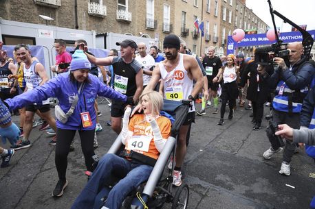 Actorul în vârstă de 48 de ani a alergat ultimii 4 kilometri ai cursei alături de Emma Fogarty, care trăiește de patru decenii cu o afecțiune rară a pielii și se deplasează în scaun rulant.