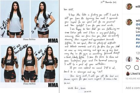 Recent, sportiva din România a avut parte de o surpriză plăcută. Diana a primit de la un fan chinez o scrisoare emoționantă. Colecționar de autografe ale luptătoarelor din MMA, Will Soong i-a trimis româncei câteva poze pe care le dorea returnate împreună cu semnătura sportivei.