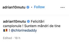 „Felicitări campionule! Suntem mândri de tine”, a postat Adi Mutu, pe când Chivu a exclamat : „Se naște o stea! Campion mondial”.