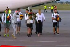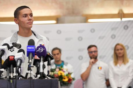 La revenirea în țară, cei doi au fost așteptați la salonul oficial ca niște adevărați campioni, cu un covor roșu și foarte multe flori, iar înotătorul în vârstă de 17 ani a ținut să rememoreze un moment petrecut acum 6 ani, alături de colegul său Robert Glință.
