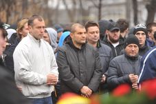 Jucătorii echipei de rugby Steaua le-au adus un omagiu lui Radu Durbac și Florică Murariu FOTO: Bogdan Iordache