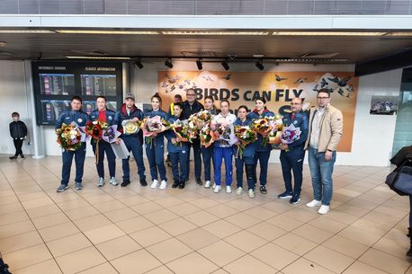 Delegația României a revenit acasă sâmbătă, 12 aprilie. La sosirea pe Aeroportul Internațional Henri Coandă, sportivele au fost întâmpinate de către reprezentanți ai Federației Române de Lupte, ai Agenției Naționale pentru Sport, dar și de oficiali ai CSA Steaua București.
