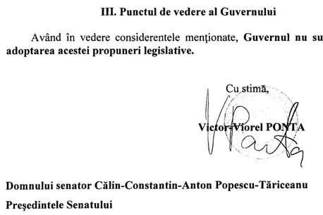 ProSport vă prezintă un alt document (foto, jos) pe care se află iscălitura premierului, un act de pe site-ul Senatului în care șeful Guvernului se semnează cu V mare și numele de familie Ponta.
