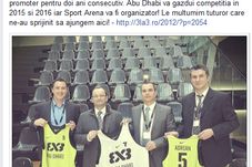 Sport Arena, principalul promotor al baschetului 3×3 în România, va fi implicat în organizarea finalei mondiale FIBA 3×3 World Tour de la Abu Dhabi în 2015 și 2016. Marți, 13 ianuarie, rămâne o dată de referință pentru cei care anul trecut au sărbătorit 10 ani de activitate, cu ediția inaugurală a Campionatului European de baschet 3×3, câștigat de tricolori în Piața Universității din București: la Geneva, Sport Arena și reprezentanții FIBA au semnat contractul cu Abu Dhabi Sports Council pentru organizarea următoarele două ediții, o premieră, regula generală fiind de a semna contracte anual.