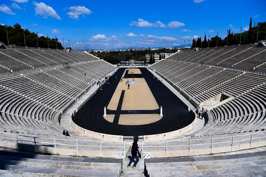 În absenţa spectatorilor, un grup restrâns de ziarişti a fost autorizat să acopere ceremonia tradiţională pe emblematicul stadion unde au avut loc primele Jocuri Olimpice moderne, în 1896.
