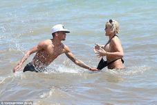 Nu mică le-a fost mirarea paparazzilor să constate, ieri, pe o plajă exclusivistă din  Palma Nova, Mallorca, că blonda și-a făcut apariția alături de un alt bărbat. Chiar mai tânăr decât Tom Richards: Jude Moore, un model englez de 20 de ani.